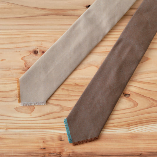 HAND FRINGED TIE COTTON TWEED